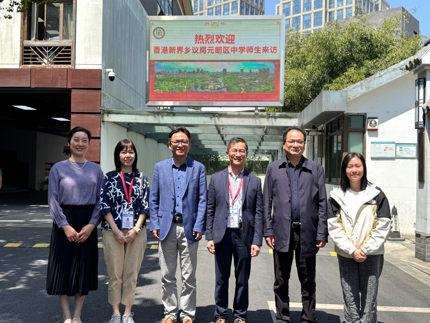 Assistant Principal Mr. LO Wai-yan (3rd right) and Ms. HUNG Chi-yan (1st right) take a photo with Assistant Principal Mr. CHEN Hong (2nd right), Miss YE Qi (1st left) and Mr. JIANG Bing (3rd left) of our sister school, who bid farewell to our teachers.