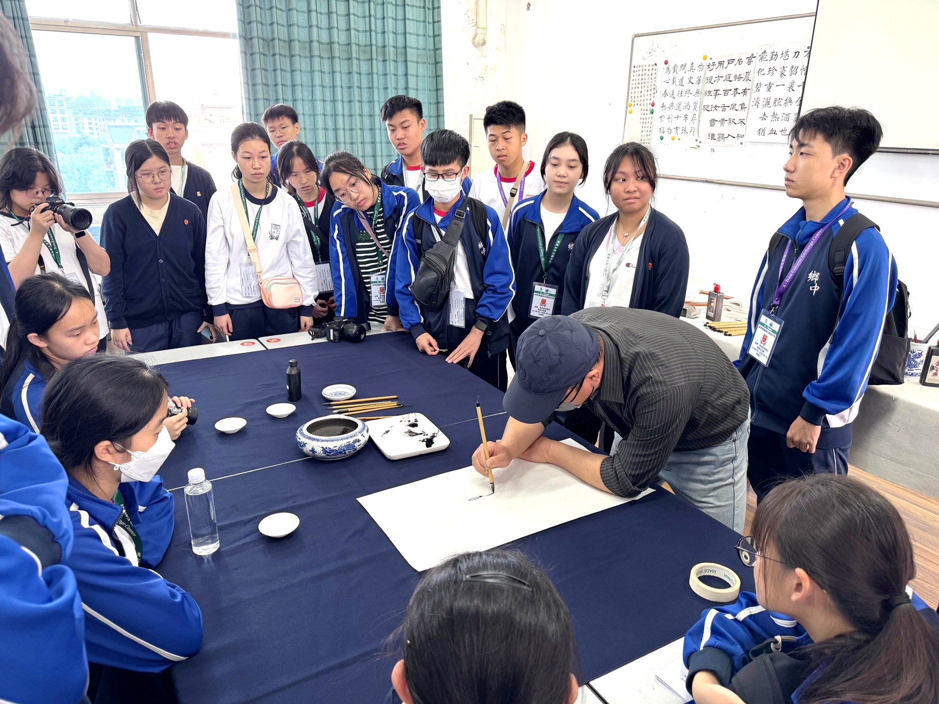 The visual art teacher teaches our students the technique of traditional Chinese painting, arousing their interest in Chinese traditional culture
